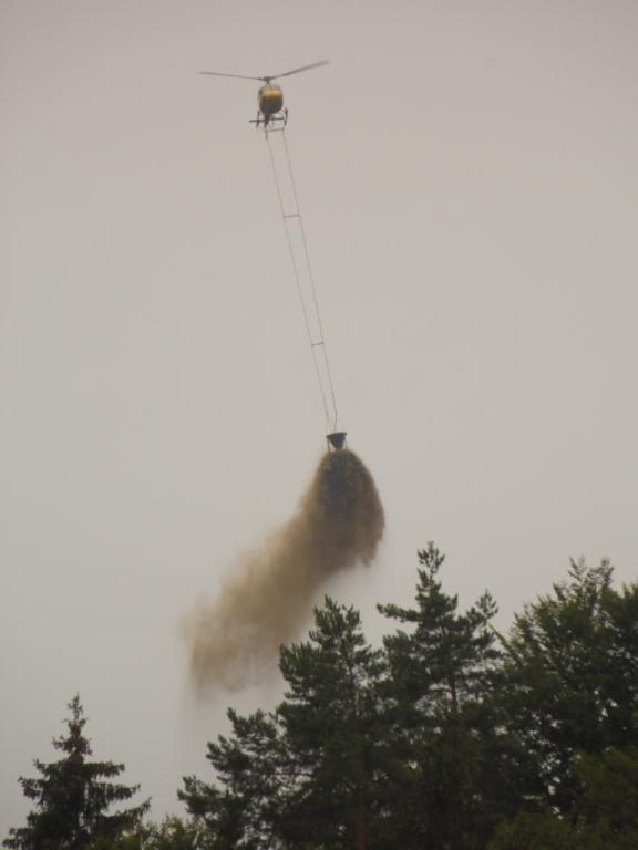 Ideales Wetter um den Wald zu kalken? Seit dem Vormittag ist ein Hubschrauber auf der anderen Talseite damit beschäftigt.