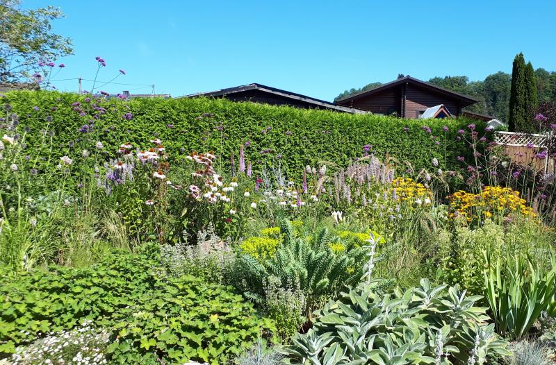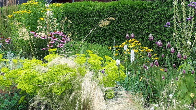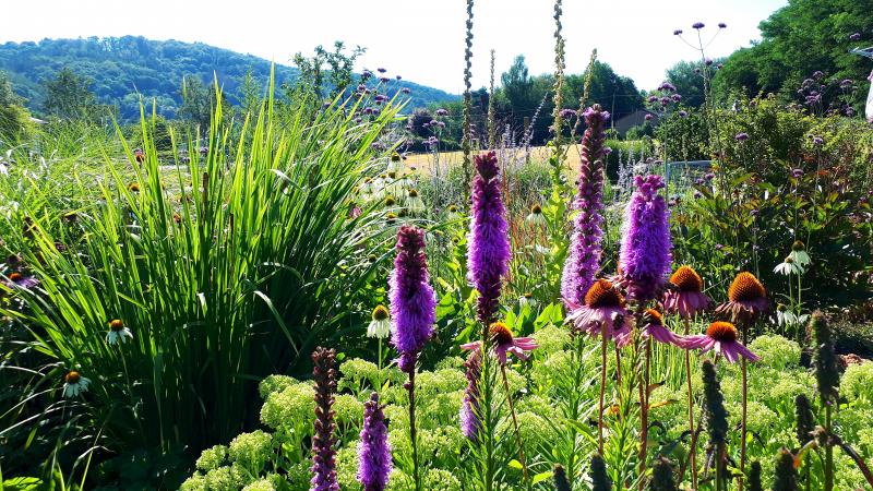 Immer wieder zu empfehlen: Liatris spicata, hier kommen nun verschiedene Perovskia in leuchtendem Lila hinzu. :D