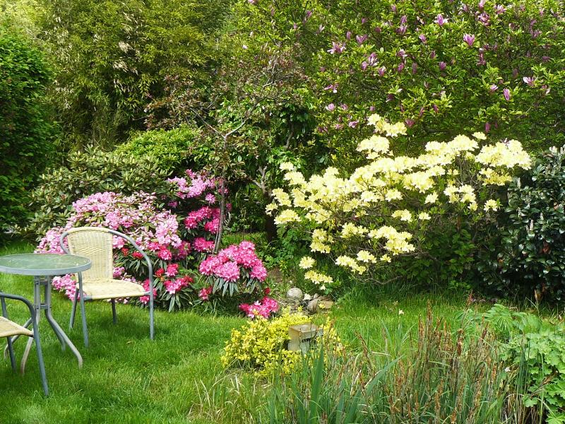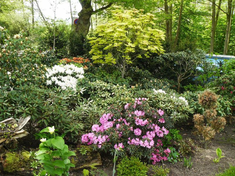 Leider hängen die Rhodos hier doch noch etwa 14 Tage hinter der normalen Blütezeit wegen der Kälte hinterher .