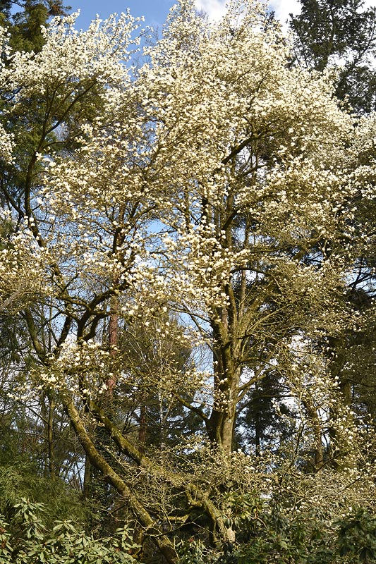 Die Riesenmagnolie steht fast schon in voller Blüte, wie immer eine Herausforderung, den Baum adäquat abzubilden.
