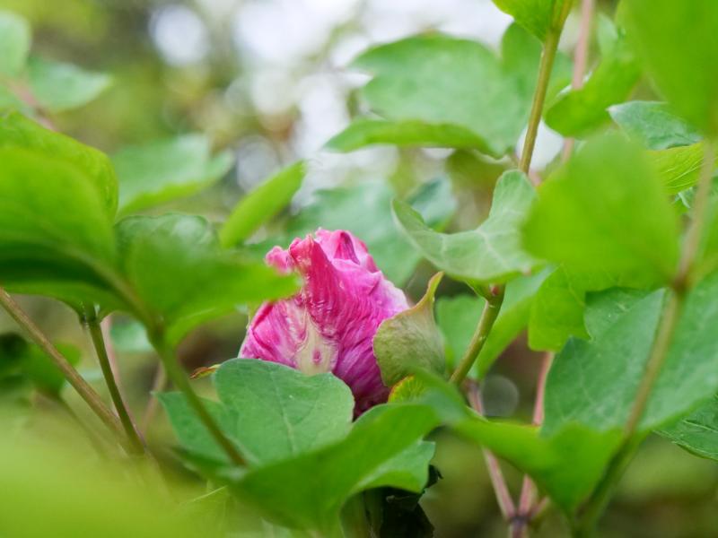 Paeonia delavayi Schwarzrot. Am 10. April 2022 und jetzt. Die Blüte bleibt beharrlich kurz über Bodenniveau. ;D .