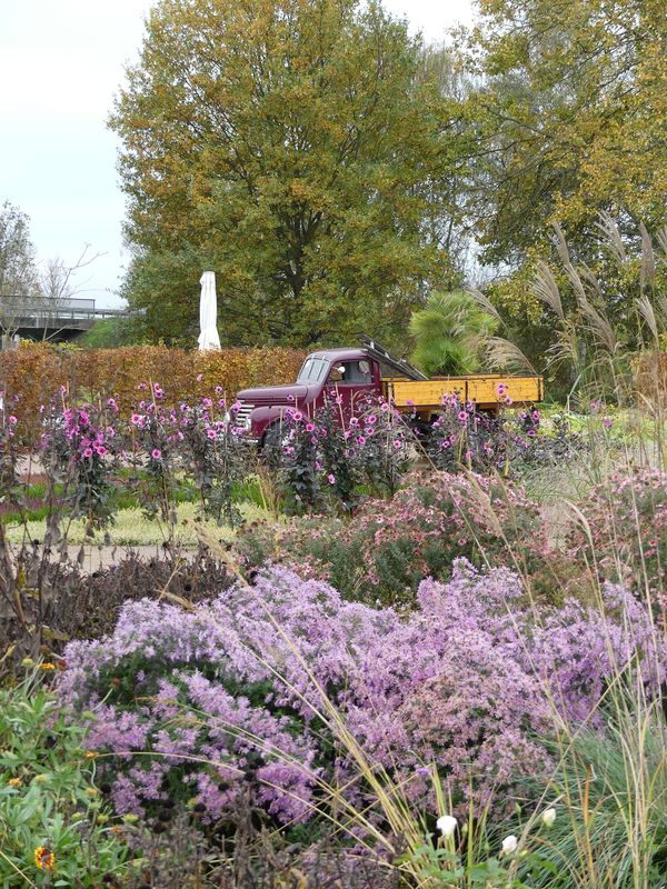 Die hoch gezogenen Dahlien in der flachen Heide wirkten irgendwie befremdlich, aber aus der richtigen Perspektive ging es.