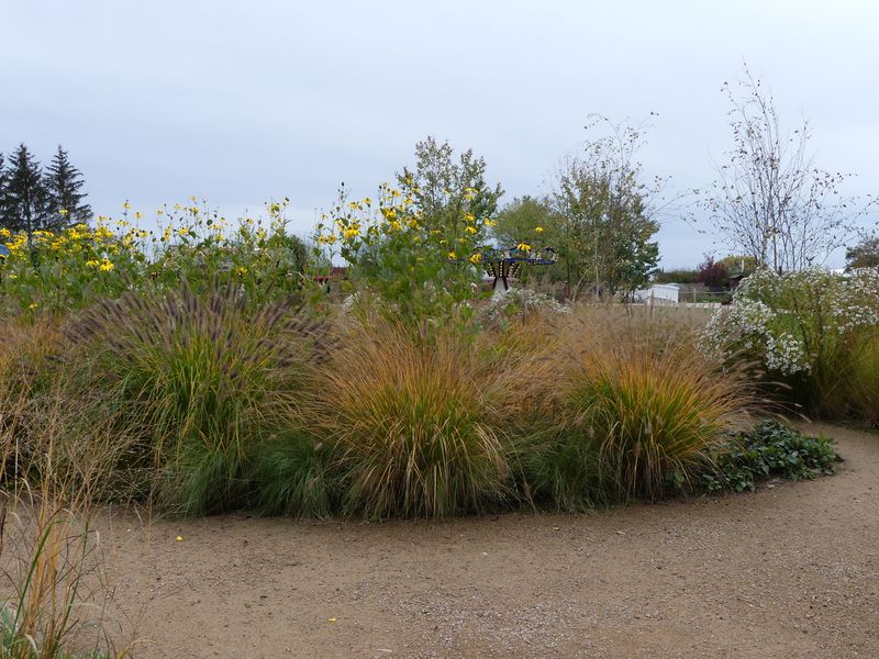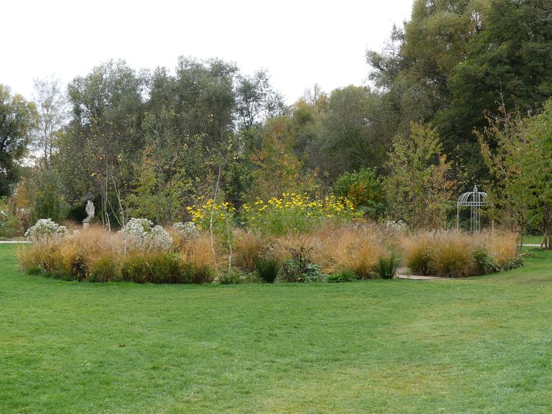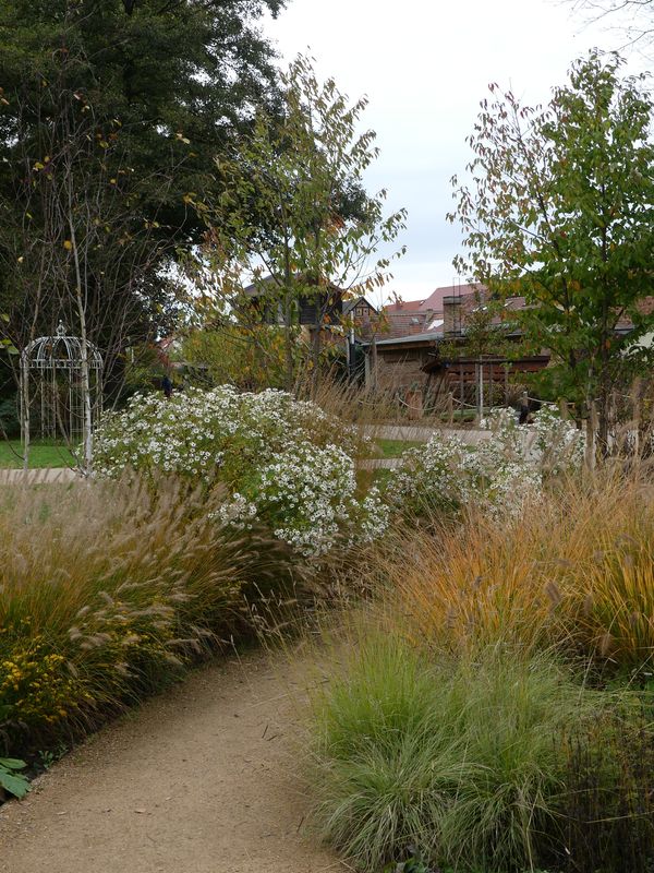 Die Rosenbeete tragen nur noch wenige Blüten und sind im Herbstmodus.