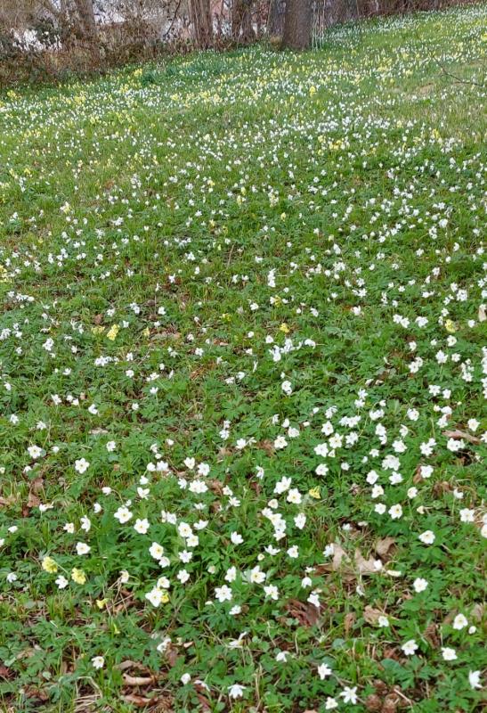 Die Narzissen in den Buschwindröschen sind wunderbar. Auf der Wiese oder im Garten? Oder ist der Garten groß genug für eine Anemonenwiese?