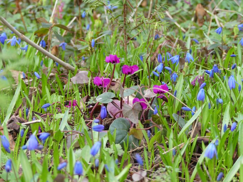 Cyclamen coum blüht vermutlich in diesem Jahr vielfach schön lange, weil die Temperaturen sehr gedämpft bleiben.