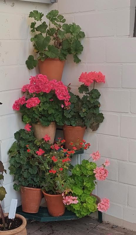 Und einige Pelargonien aus meiner doch sehr verkleinerten Sammlung. Schade, die alte Ardens, ganz oben, blüht wieder nicht.