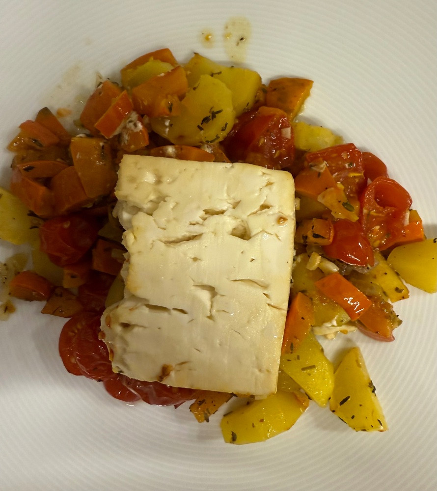 Bei uns gab Kürbis Kartoffel Gemüse mit Feta überbacken. Und Salat.