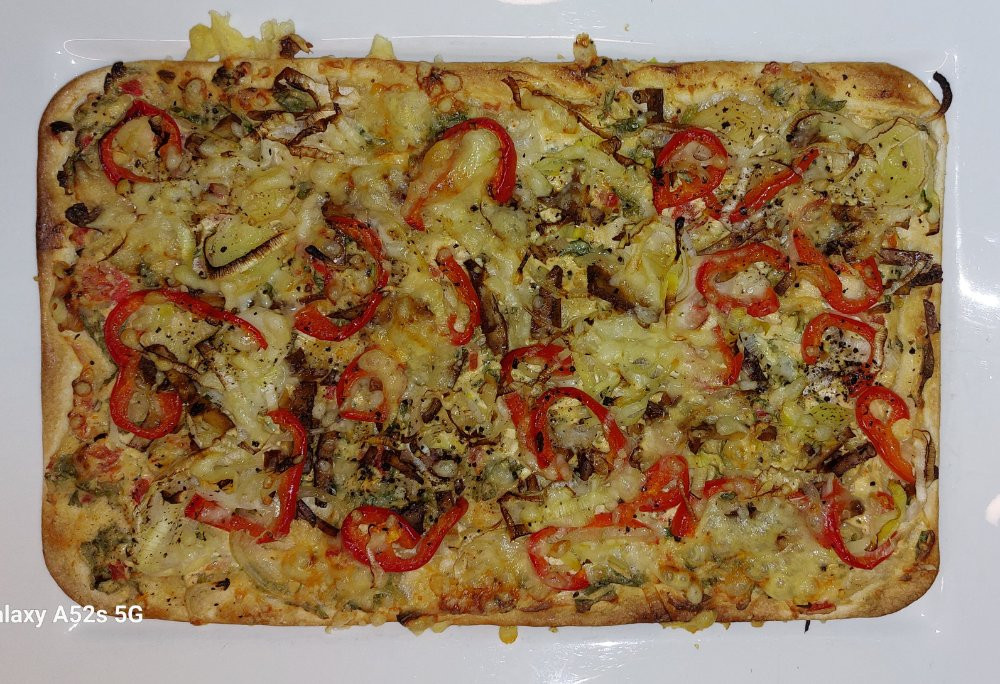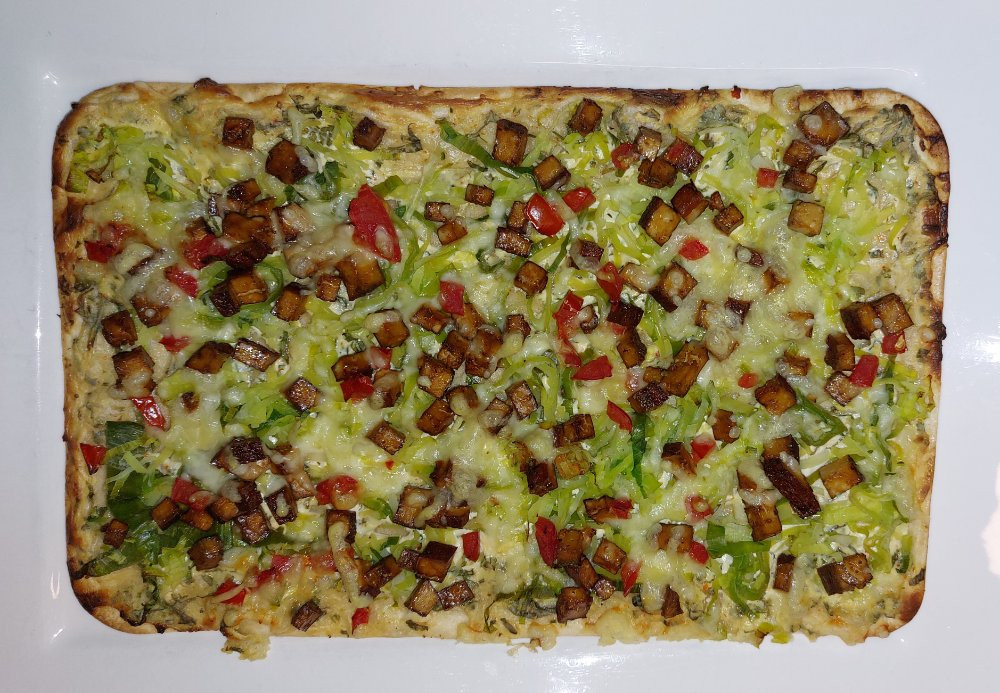 Davor gab es Flammkuchen mit Paprika, Porree und Räuchertofu,