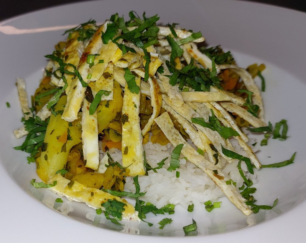 TK-Gemüsemischung " chinesisch", Basmati, Eustreifen und frischer Koriander,
