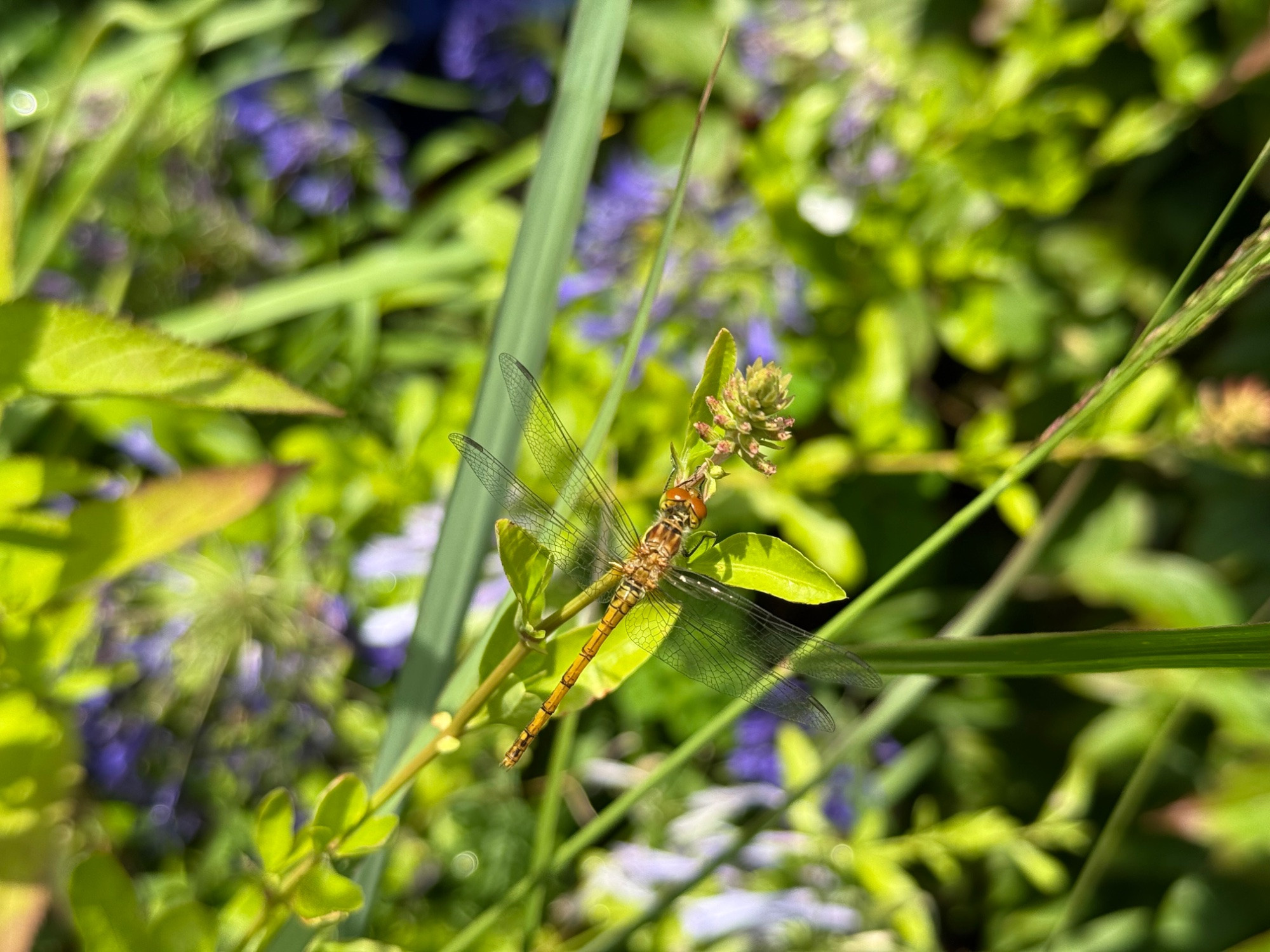 da der versuch eines libellenthreads letztes jahr nicht recht ins laufen kam, mein gartenfund vom samstag dann doch auch hier – google lens wirft mir sympetrum flaveolum aus, die gefleckte heidelibelle. daran zweifle ich, weiß es aber nicht besser, wenn es auch toll wäre.