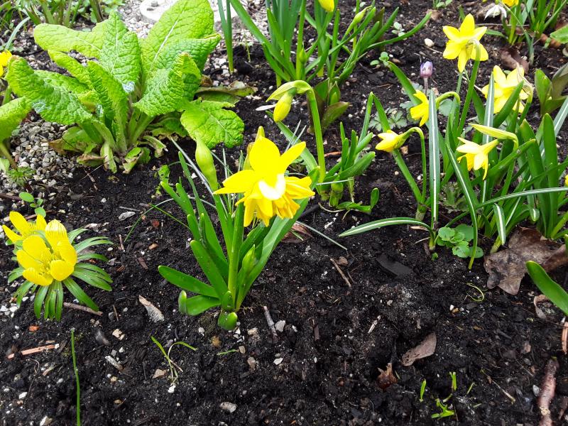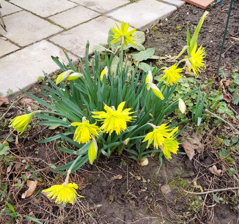 Seit heute blühen jetzt auch hier einige erste Narzissen. Leider bin ich mir nicht mehr sicher, welche das hier waren, müssten eigentlich ‚Snipe‘ (oder so ähnlich?) heißen… allerdings hatte ich die deutlich weißer in Erinnerung, vielleicht verwechsle ich da auch was. Sind sehr zierlich, ca. 15-20 cm hoch