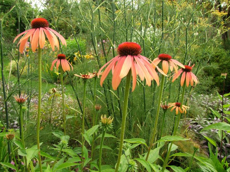 Hier ein besonders schönes, niedriges und sehr früh blühendes Helenium, nämlich 'Moerheim Beauty'. Blüht hier schon seit mindestens 2 Wochen ! Dazu kommt nun das Gelb vom 'Goldsturm'. 8)