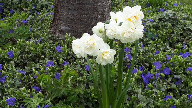 Ich kann keine so schönen Narzissen vorweisen- aber einen blauen Topf 😉