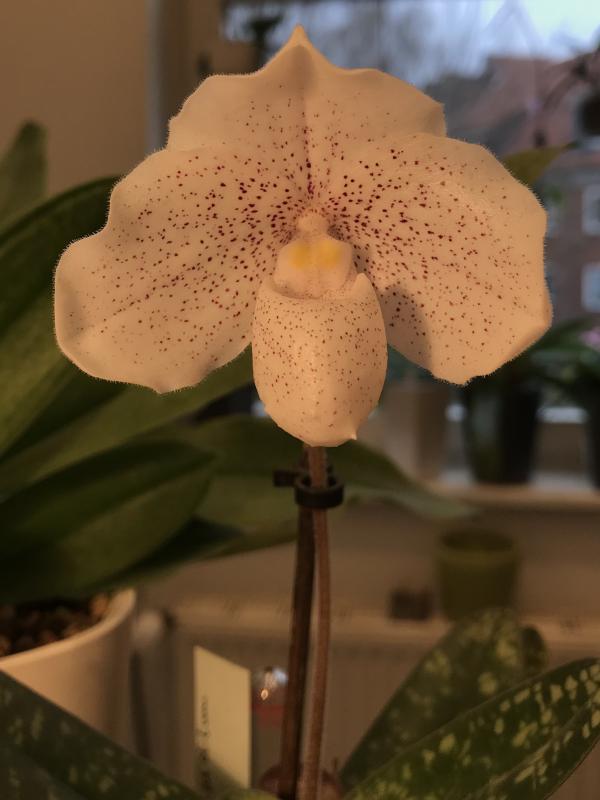 Hier blüht wieder Paphiopedilum bellatulum. :)