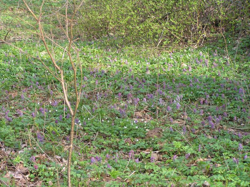 Einen ähnlichen Bereich (etwas lichter und trockener) gibt es etwa 300 m hügelauf, nur mit C. cava..... da war ich aber heute zu faul....