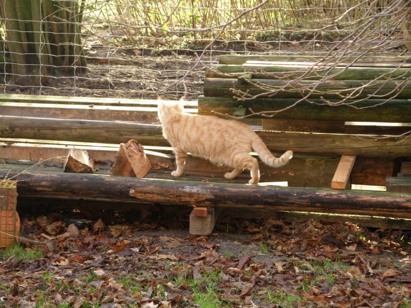 Toffee möchte nun endlich die Hühner aus der Nähe begucken...............aber die sind doof, denn sie laufen ja weg "ach nö.........so was aber auch"