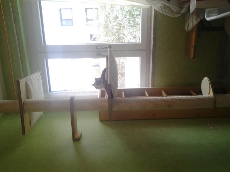 Eigentlich müssten wir mal 2016 eröffnen. Aber der Katzenkratzbaum war ja mein 2015 Gebutstagsgeschenk. Er steht seit ein paar Tagen. Heute ist Josy das erste mal in die Hängematte. Allesrdings nicht geklettert sondern übers Fensterbrett gehüpft.