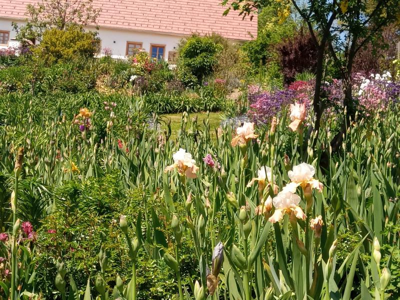 Die Bartiris im sonnigen Vorgarten sind verblüht, jetzt blühen die Bartiris hinterm Haus im Halbschatten unter dem Gingkobaum.