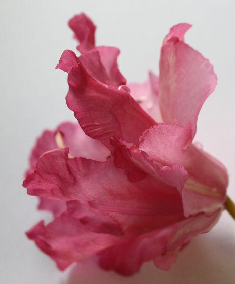bei diesen wunderschönen blättern wär mir die blüte völlig wurscht.Nichts spektakuläres, aber, so finde ich, dennoch interessant: Diese Hybride scheint eine Kreuzung aus R. houlstonii (Sorry, aktuell wohl nur noch fortunei/discolor) und R. yakushimanum (auch nicht korrekt) zu sein. Letzterer hat sich mit einem zaghaften Indumentum beteiligt.Ich finde das Zusammenspiel zwischen den schlanken Blättern und dem recht kleinen, aber sehr geschlossenen Blütenstutz recht reizvoll. Scheint leider etwas blühfaul zu sein.