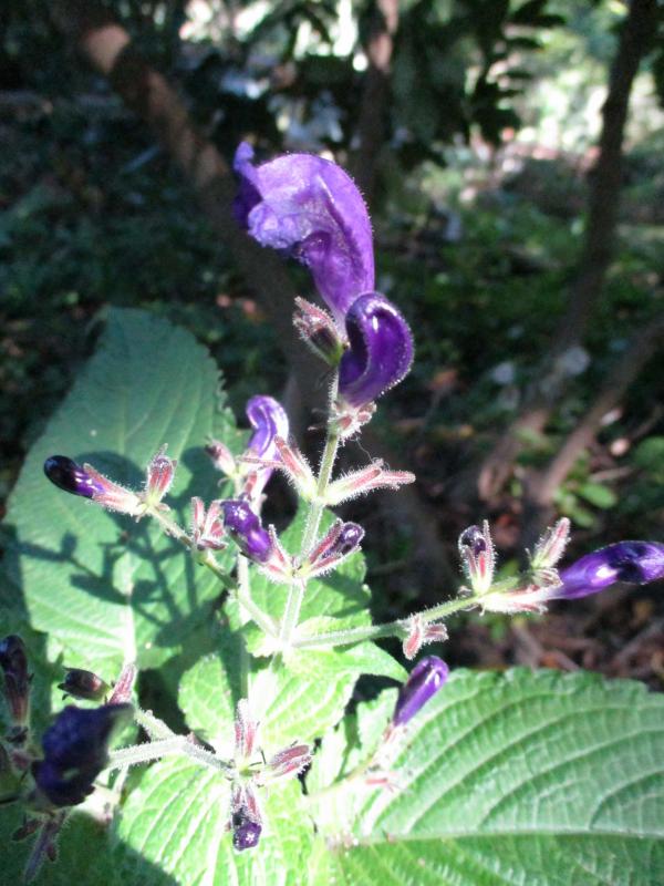 Diese Pflanze mag ich sehr gerne :). Blüht in der (bei mir ::)) blütenarmen Phase zwischen Sommer und Herbst und im Schatten - Otternkopf Strobilanthes atropurpureus.