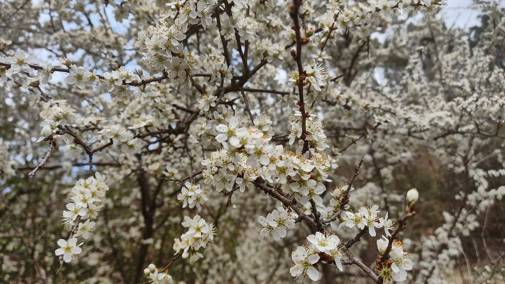 Die chinesische Pflaume, die ich vor Jahren ausgesät hatte, hat eine gute Blütendichte