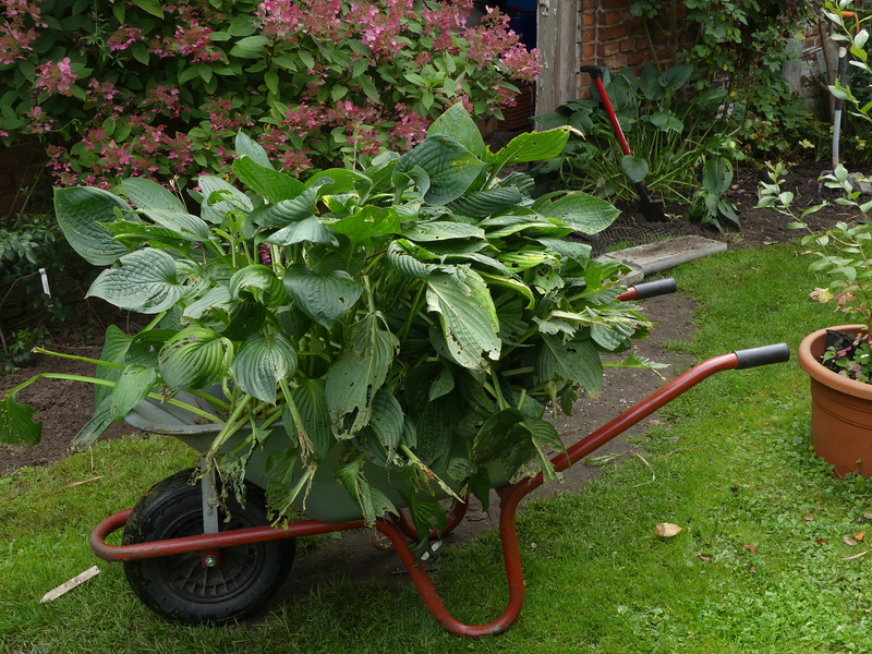 Heute musste Hosta plantaginea weiche, weil ich umgestalten will. Dass sie schon etwas größer ist, war mir ja klar, aber erst nach dem Ausgraben wurde mir klar, wie groß. ;D Die zweite Hälfte ist hinten im Bild noch in der Erde zu erkennen.