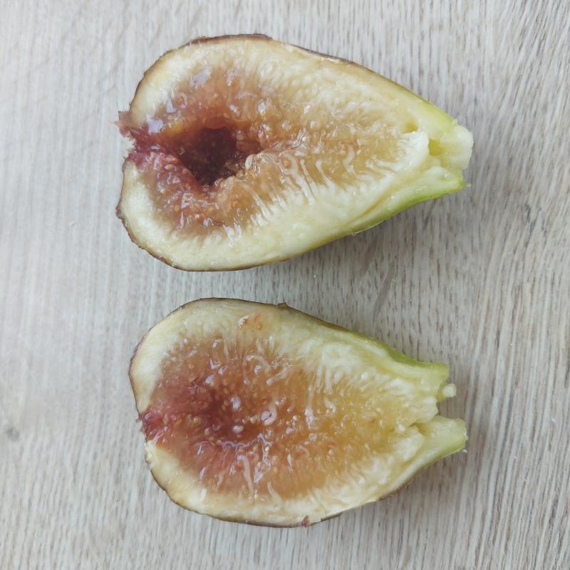 Dorée möchte seit einer Woche ins Erntekörbchen. Bisher alles über 70 g und Ernte noch vor LdA. Trägt viel und ist knallesüß. Honigfeige eben. Wenn man lange genug hängen lässt, reift auch der grüne Teil am Stiel voll aus.