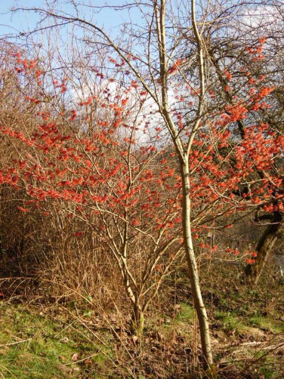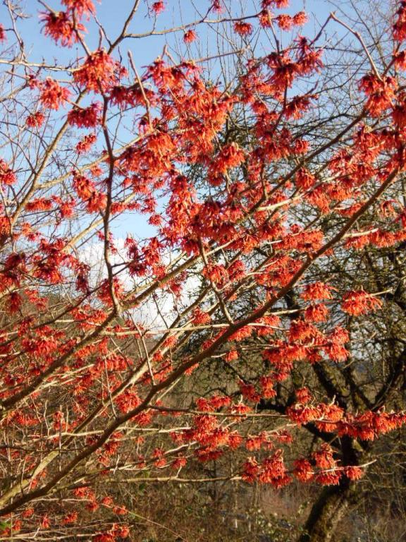 das stimmt, hier wirkt die solitär gestellte hamamelis aber wie so einer dieser extrem gefiederten fächerahorne, die wachsen auch oft sehr breit-horizontal. in jedem fall ein hingucker!