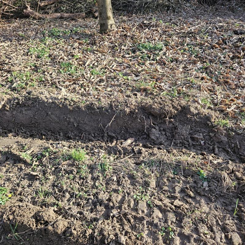 auf der unteren Terrasse das Nachbargrundstück, auch dort tiefe Spuren