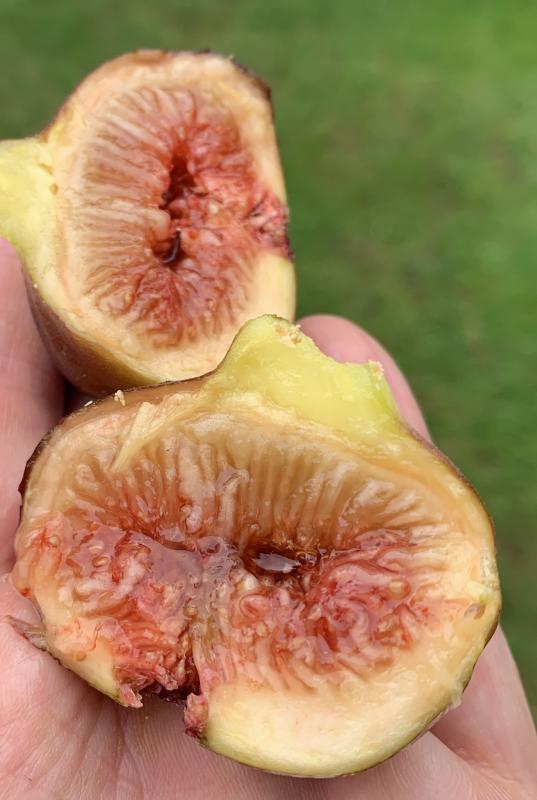 Übrigens meinte besagter Experte auch, dass meine Früchte aussehen, als seien sie bestäubt. Dafür spricht auch der sehr ausgeprägte, fruchtige Geschmack, der wohl nur bei befruchteten Exemplaren entsteht. Daher sind meine positiven Erfahrungen wahrscheinlich mit Vorsicht zu genießen, wenn man in einer Gegend ohne Feigenwespe lebt.