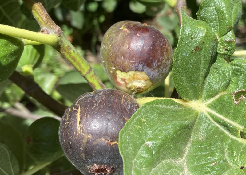 Eine frisch angefressene Feige mit ganz ähnlichem Schadbild wie weiter oben schon mal gezeigt: