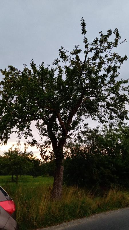 Der Baum wächst in Nordwest-Deutschland. Wie alt er ist, weiß ich nicht. Ich habe nur den einen Apfel. Es muss sich ja um einen Sommerapfel handeln, auch wenn der Befall mit Apfelwickler ihn etwas früher als normal hat reifen lassen. Das Jahr ist ja insgesamt in der Apfelreife sehr früh.