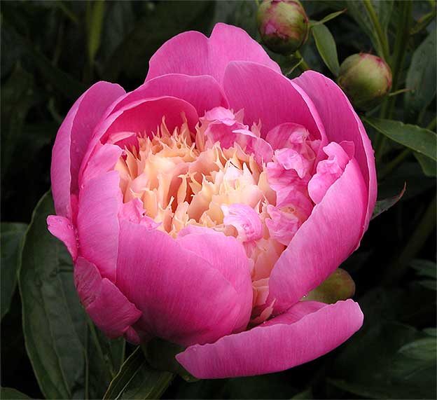 Eigentlich hatte ich ja gehofft, sie würde dieses Jahr ein paar mehr Blüten zeigen, aber es sind wieder nur zwei. Dabei steht sie schon vier Jahre in meinem Garten. Sie hat keinen Namen,ist aber meine Lieblingspäonie.LGcarlina