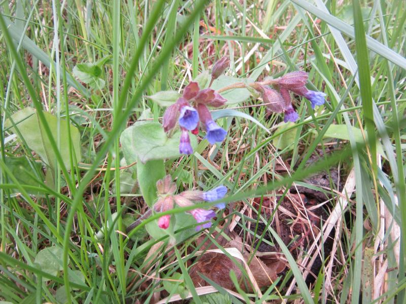 Hier wachsen auf den Streuobstwiesen oberhalb der Weinberge in nicht ganz prallsonnigen Ecken Lungenkräuter, zusammen mit Buschwindröschen und Schlüsselblumen. Welche Art es wohl ist? P. mollis? Auffällig finde ich, dass es immer nur kleine Pflänzchen, mit bestenfalls drei-vier Stängeln sind, welche etwas verstreut zueinander stehen, niemals echte Horste.