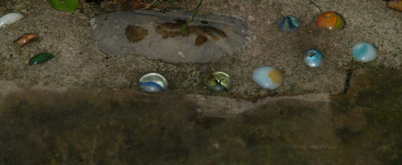 und beim gehen bewundere ich wieder mal die murmeln im weg.die mir geschenkten pflanzen habe ich vor latuer shcauen stehen lassen ;Dlg, brigitte