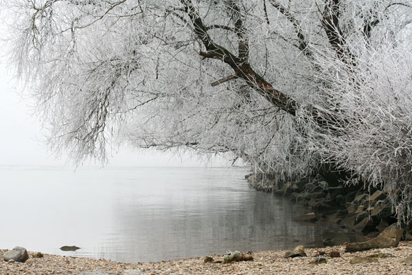 Gesehen habe ich sie dann wenigstens auf meiner vierstündigen Fahrt am 4. Advent durch einen Teil Deutschlands. Bis auf eine warme Niederung zwischendurch bin ich wie in Trance durch weiß bereifte Landschaften unter graudüsterem Himmel gedüst, wie ich sie in dieser Intensität noch nie gesehen habe. Leider hatte ich keine Zeit, einen Abstecher von der Autobahn zu machen - die Kamera hätte ich dabei gehabt. Am Ende meiner Reise war es vorbei mit der Kälte, es war erwartungsgemäß nass und grau. Also gab es auch dann keine Bilder. Fein, dass ich mir Eure Fotos zur Erinnerung anschauen kann!