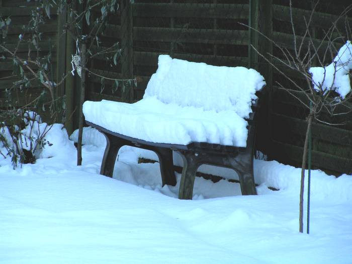 Heute Nacht haben wir die -20°C doch nicht geknackt, es waren nur -19°C.Bis zum späten Vormittag war strahlender Sonnenschein, dann bezog sich der Himmel vollständig, und es kam später Schneefall (etwa 40 km weiter östlich Eisregen). Der Schnee (siehe Biathlon z.Zt. in Oberhof) brachte einen Wärmeschwall mit, denn wir haben aktuell fast schon ungewohnte -6°C.