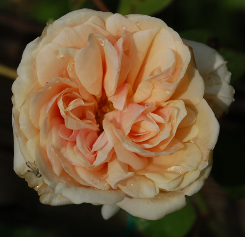 Monsieur Rosier hat dieses Jahr recht zugelegt an Holz und Blüten. Lange Lianentriebe schleudert er auf alle Seiten. Ueber den kleinen Obelisken hat er nur ein müdes Lächeln übrig und hängt sich lieber in den grösseren danebenstehenden Blumenhartriegel.