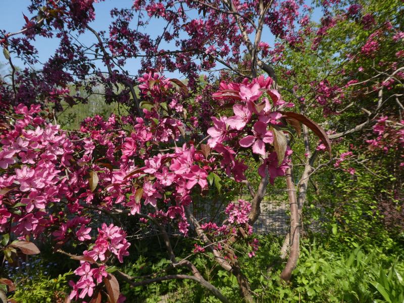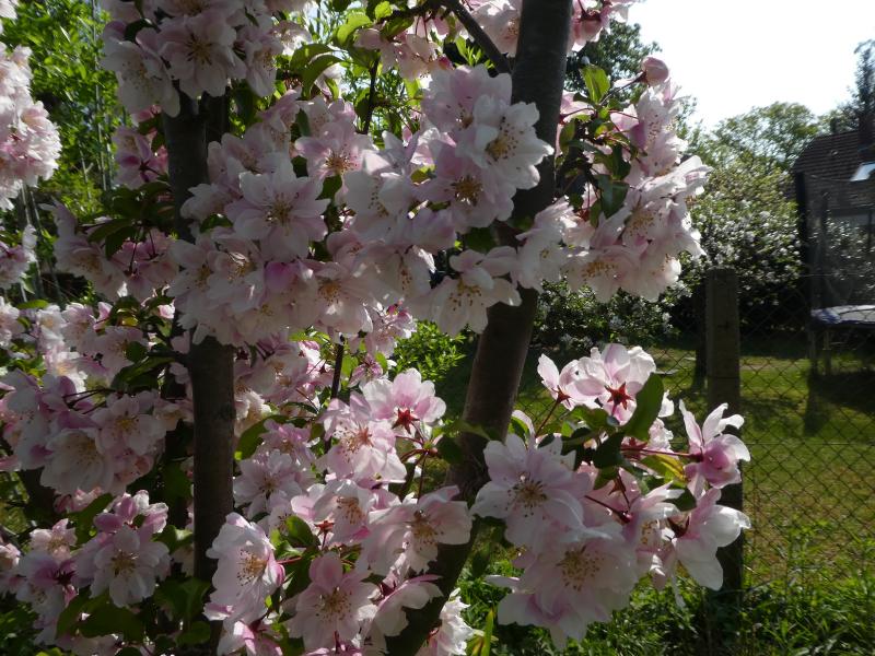 Ja, die Zieräpfel blühen dieses Jahr sehr üppig. Diese Säule beispielsweise ist schon fast kitschig, so üppig rosa, wie sie sich präsentiert.