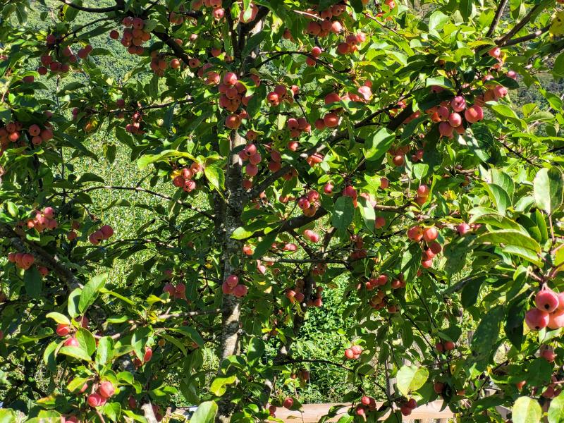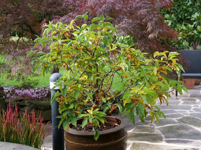 Malus x zumi 'Butterball' hat in diesem Jahr ein Übermaß an Früchten an den Zweigen hängen. Ein paar habe ich geerntet. Ich glaube ich werde sie zusammen mit Nashifrüchten versaften. Eine tolle Sorte übrigens...