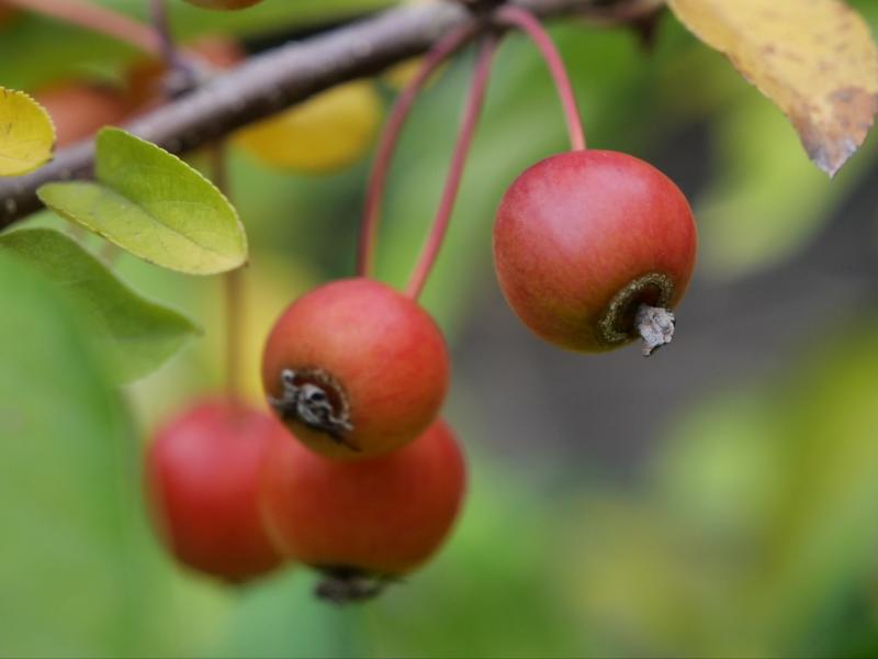 Malus 'Red Sentinel' färbt nun rot. Die Äpfelchen sind niedlich und überaus haltbar... allerdings eher als Winterzierde und spätes Vogelfutter. Zum Einkochen oder Saften wohl kaum zu verwerten, wie z.B. Butterball.
