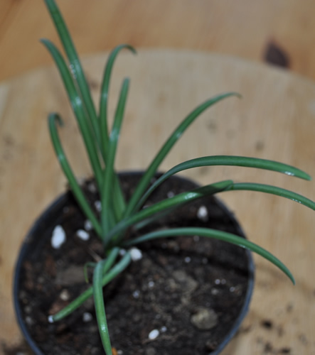 Die Blätter scheinen jedenfalls zu stimmen, marcir, so dass es sich wirklich um Galanthus reginae-olgae handeln dürfte. Charakteristisch sind die glänzenden Blätter mit dem hellen Mittelstrich bei planer Vernation. Es blüht normalerweise schon früh im Herbst. Insbesondere auf Sizilien gibt es eine Unterart, die erst im Frühjahr blüht: Galanthus reginae-olgae subspec. vernalis . Die Blüte gleicht der von G. nivalis .