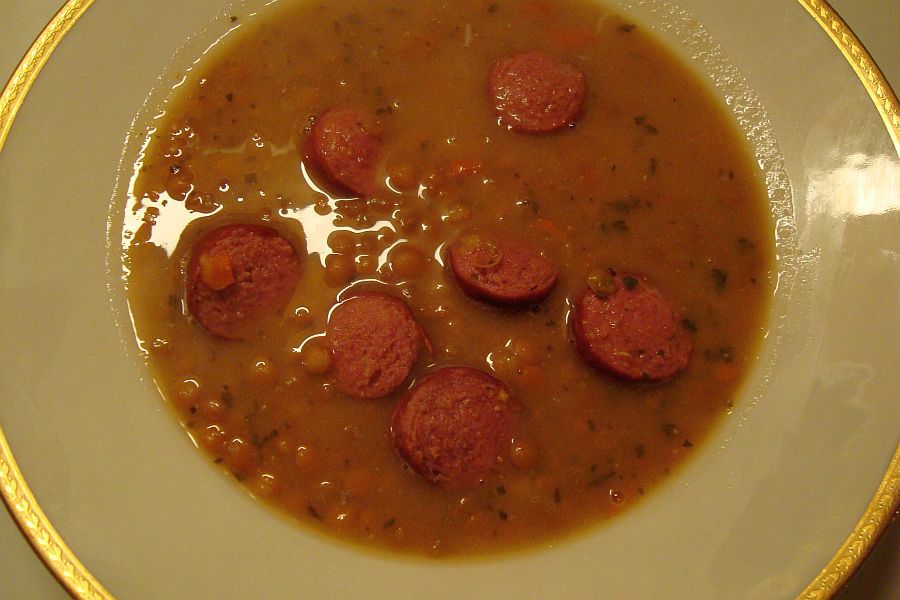 wir waren in der wochenendfrische. es gab linsensuppe mit pferdewürstchen.