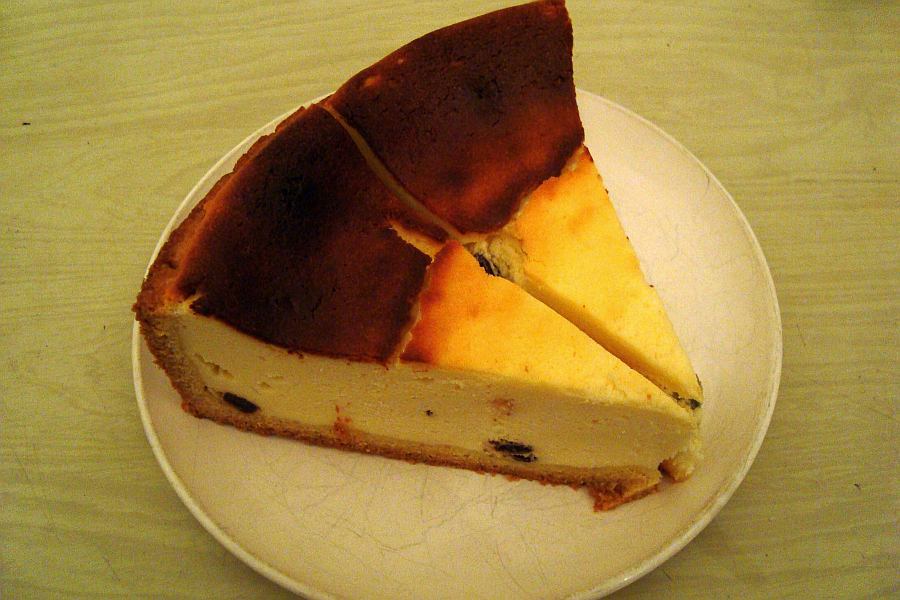 Sieht aus, als hättest Du eine abgesoffene Fliege mit eingebacken.dann eine käsetorte (einen käsekuchen)