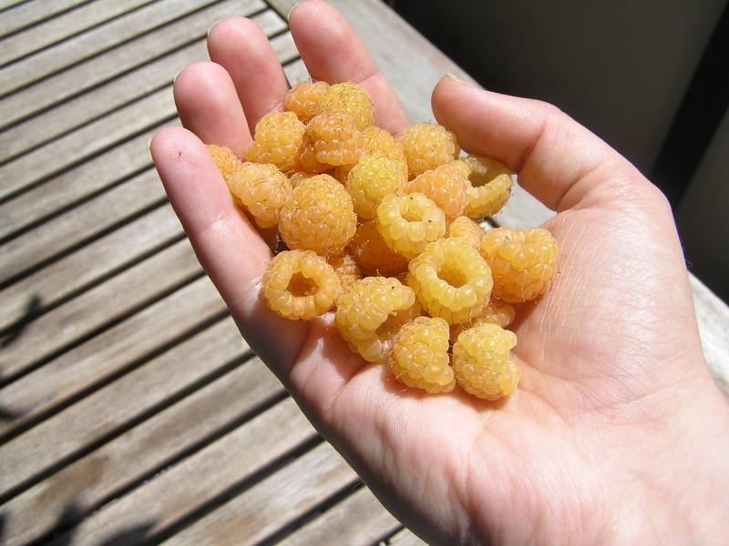 Die gelben Himbeeren sehen sehr lecker aus.
