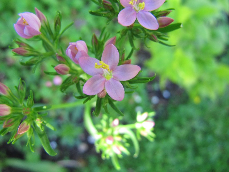 Letztes Jahr erhielt ich von der GdS Samen des Centaurium erythraea. Der sehr feine Samen keimte gut, es gab im Saattöpchen eine moosige Platte mit Keimlingen. Büschelweise habe ich sie ausgepflanzt. Sie entwickelten sich ganz gut, aber über Winter verschwanden viele und einige habe ich sicher auch gejätet
