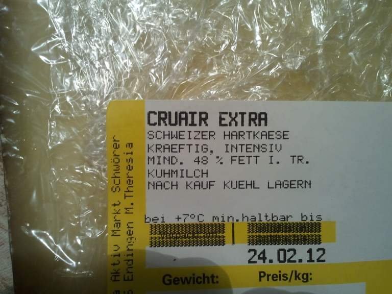Ich möchte euch nicht vorenthalten, welche schweizer Käsespezialität es bei uns zu kaufen gibt. ;D ;D ;DDa es ihn bei uns zum Abendbrot gab, passt das Bild wohl hier in den Faden