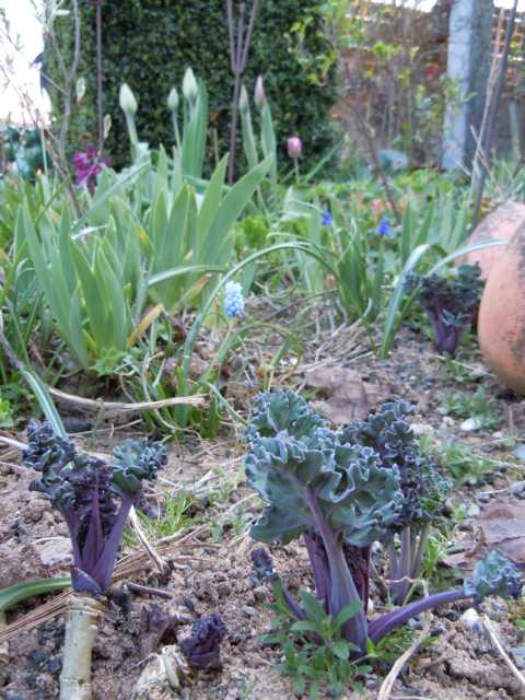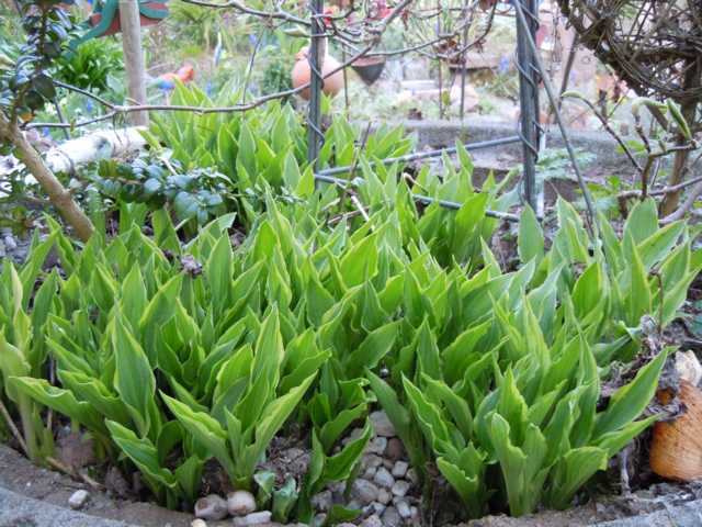 Galanthus war mal nebenan. Die Crambe entfaltet sich sehr rasch und deckt die Fläche zu. Anscheinend hatte das Galanthuslaub nicht genug Licht darunter zum einziehen.