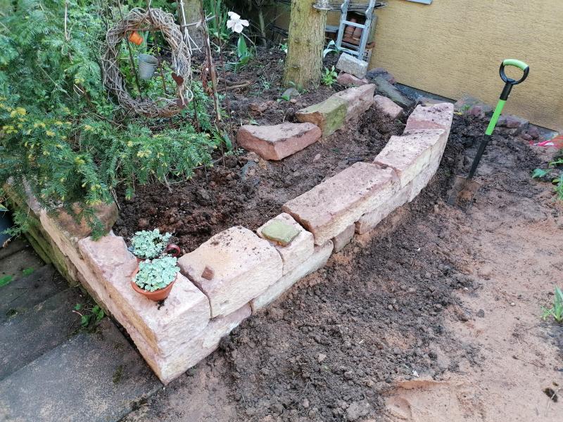 Das Mäuerchen ist wirklich sehr hübsch geworden! Mit den Sandsteinquadern ist's auch etwas einfacher, als so etwas aus Bruchsteinen zusammenzupuzzeln, aber beides hat seinen Charme, vor allem rund ums Haus sind solche klaren, geraden Linien ein schöner Ruhepol fürs Auge. Auf die Bepflanzung bin ich ebenfalls gespannt! :)