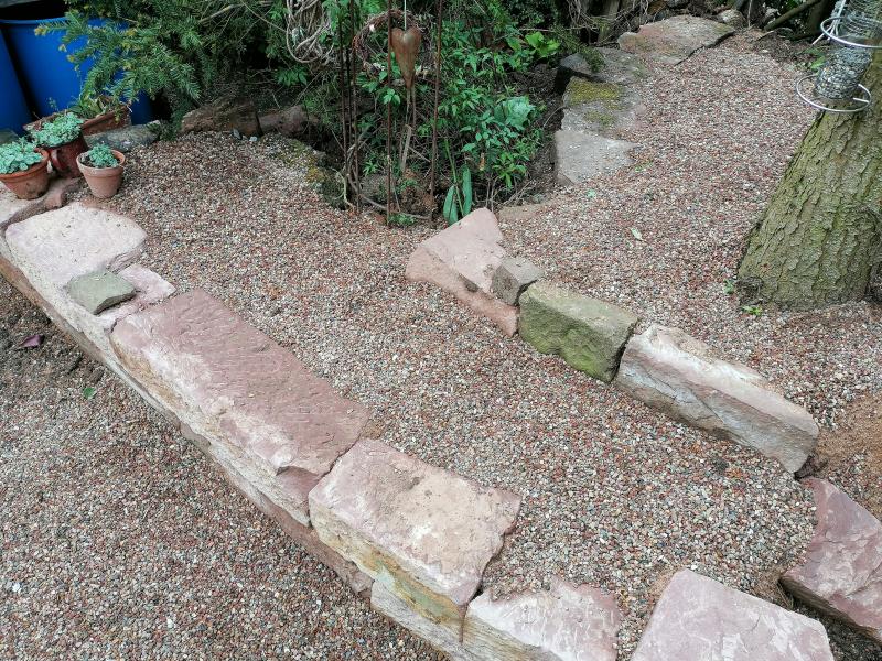 Ein paar Plättli aus Sandstein als Weg verlegt (genau über dem Schacht).